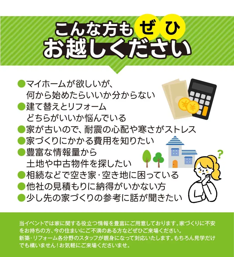 必須 ご来場希望日時 選択してください 必須 ご検討内容 リフォーム・リノベーションについて新築住宅についてその他 必須 お名前 必須 ふりがな 必須 郵便番号 必須 ご住所 必須 メールアドレス 必須 電話番号 差支えなければ、以下の質問にもお答えください。 任意 工事完了希望時期について 時期検討中・これから検討すぐにでも1ケ月以内1ケ月~半年以内半年~1年以内1年~2年以内2年~3年以内3年以上先 任意 建物・土地について 現在所有している(自己所有)現在所有している(親族所有)購入予定物件が決定している探している / 探しはじめ 任意 このイベントを知ったきっかけ InstagramfacebookホームページGoogle検索バナー広告新聞折込チラシポスト投函チラシ紹介その他 任意 ご質問・ご要望等 【自動メールが届かない場合】 お申し込み後、すぐに確認メールが自動送信されます。 届かない場合、迷惑メール設定によりブロックされている可能性があります。 特に docomo・au/ezweb・softbank の方は設定をご確認ください。 ご不明点などございましたら、お電話でもお気軽にお問合せください。0265-98-9038 このまま進むことで、当社の個人情報取扱方針にご同意いただいたものとしてお手続きを承ります。 内容をご確認のうえ、よろしければボタンを押してお進みください。 ありがとうございます。メッセージは送信されました。 15分以内に確認用の自動返信メールが届きます。 メールが届かない場合は、メールアドレスが誤っているか、確認メールが迷惑メールフォルダ等に振り分けられている、ドメイン指定で拒否されている可能性がありますので、再度ご確認をお願いいたします。 また、ご使用の端末/メールシステムの空き容量不足により、メールを受信できない場合もございます。その際は空き容量の確保をお願いいたします。 よろしくお願いいたします。 閉じる